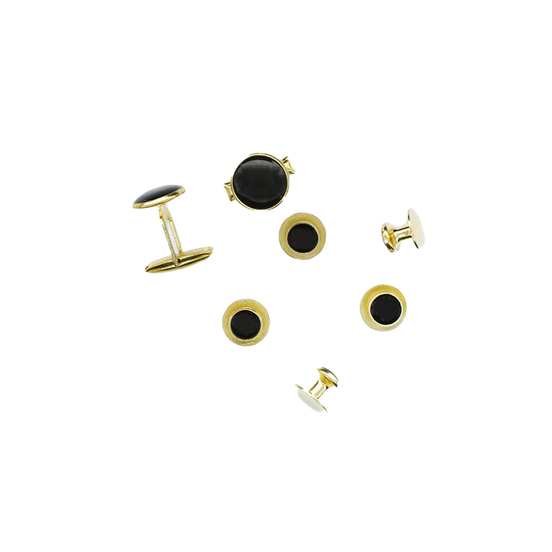 Black and Silver Studs & Cufflinks with Elegant Trim
